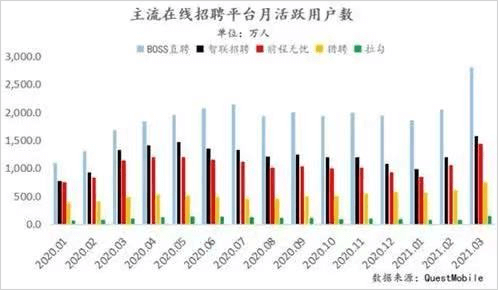 从现实出发,BOSS直聘继续保持高速增长的势能仍在。继去年成功登上QuestMobile年度增长榜单并成为其中唯一的招聘类APP之后,BOSS直聘在今年已经连续多周登上苹果应用商店中国区热门榜,而且月活跃用户数在国内所有招聘平台中遥遥领先。